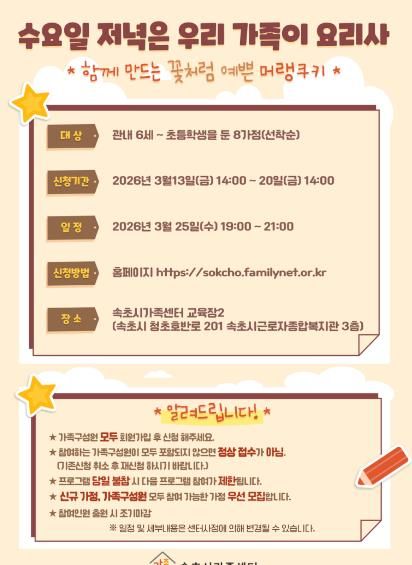 참여를 희망하는 가정은 속초시가족센터 누리집을 통해 신청할 수 있다.