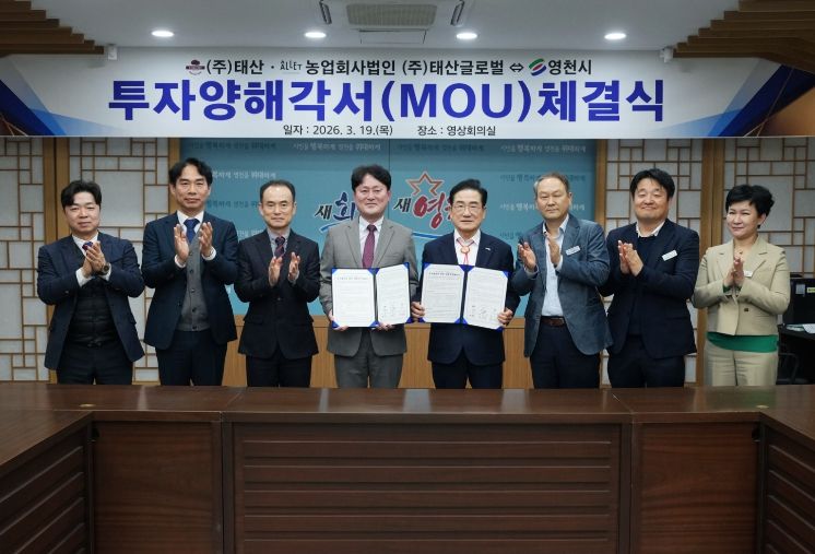 협약식에는 최기문 영천시장, 허광옥 ㈜태산·농업회사법인 ㈜태산글로벌 대표이사 등 관계자들이 참석해 성공적인 사업 추진을 위한 상호 협력을 약속했다.
