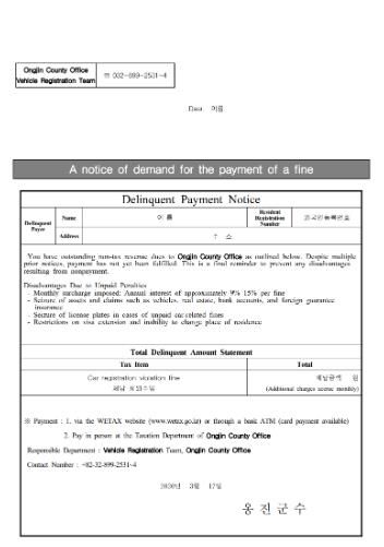 군 관계자는“이번 영어 안내문은 외국인 체납자에게 공정한 납세의무를 인식시키는 계기가 될 것”이라며, 앞으로도 다변하는 시대에 발맞춰 다양한 자동차 체납 과태료 징수 시책 개발을 위해 적극적으로 노력하겠다”고 말했다.