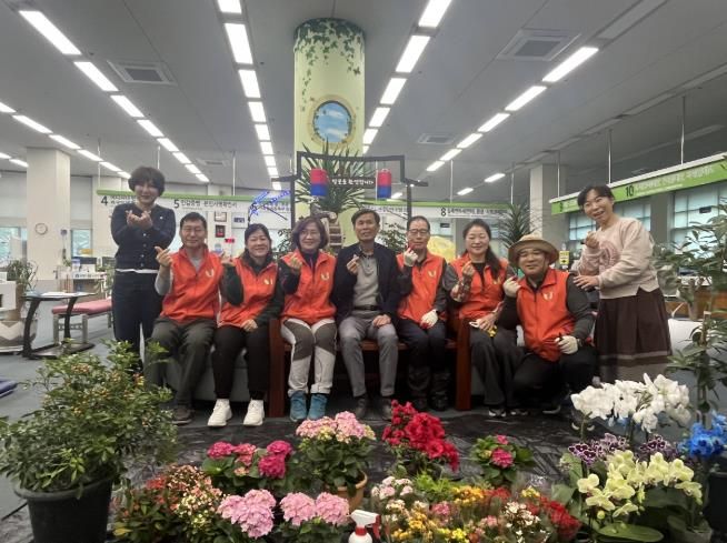 진주시민정원사 7명은 민원인에게 불편을 주지 않는 일요일에 자원봉사자로 참여해 민원실 중앙에 마련된 실내정원을 편안하고 화사한 힐링 공간으로 새단장했다.