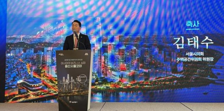인사이드피플 김재윤 기자 | 서울특별시의회 주택공간위원회 김태수 위원장(국민의힘, 성북구 제4선거구)은 3월 27일 오후 2시, 전쟁기념관 피스앤파크(아주르홀, 4층)에서 개최된 '아시아의 비즈니스 심장, 용산서울코어 : 글로벌 기업 지역본부 유치 전략 포럼'에 참석하여 축사를 통해 용산 국제업무지구의 전략적 가치를 강조하고 서울특별시의회의 적극 지원 의지를 밝혔다.