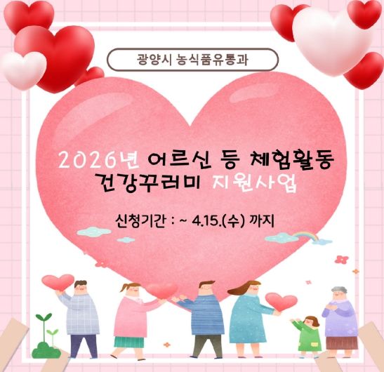 인사이드피플 장은미 기자 | 광양시가 어르신·장애인·아동 등 실외 활동이 어려운 이용자를 대상으로 ‘체험활동 건강꾸러미 지원사업’을 추진하고, 4월 15일까지 신청을 받는다.