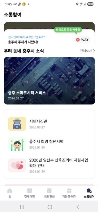 이번 연계를 통해 시민들은 별도의 검색이나 추가 앱 설치 없이, 충주사랑상품권 앱 내 ‘소통참여’ 메뉴에서 스마트시티 통합플랫폼 모바일 홈페이지에 손쉽게 접속할 수 있게 됐다.