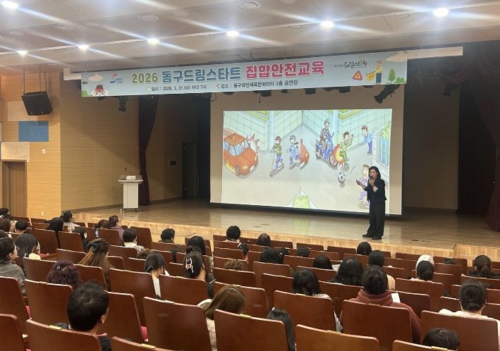인사이드피플 노재현 기자 | 부산 동구는 지난 31일 동구국민체육문예센터에서 드림스타트 아동 및 가족 100여 명이 참석한 가운데, 생활 속 안전한 일상을 지키고 사고를 예방하기 위한 ‘2026년 드림스타트 안전 집합교육’을 실시했다고 밝혔다.