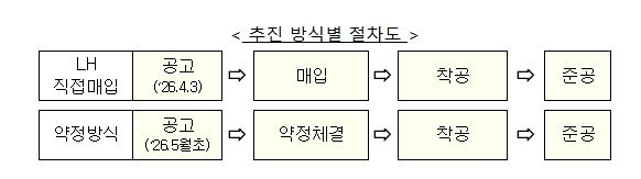 이번 사업은 신속한 주택공급을 위한 LH의 주도적 역할과 민간의 창의성·역량 활용을 균형있게 도모하기 위해, LH 직접매입과 매입약정방식을 병행하여 추진한다.