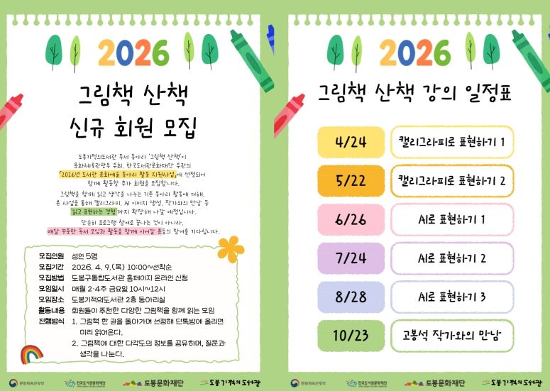 인사이드피플 노재현 기자 | 서울 도봉구 도봉기적의도서관이 독서동아리 ‘그림책 산책’을 확대 운영한다. ‘그림책 산책’은 그림책을 함께 읽고 이야기를 나누는 성인 독서 동아리다. 앞서 도서관은 문화체육관광부와 한국도서관문화재단이 추진하는 녪년 도서관 문화예술 동아리 활동 지원사업’에 선정됐다.