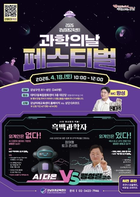조성명 강남구청장은 “이번 페스티벌은 과학을 보고 듣는 데서 그치지 않고, AI와 함께 생각하고 토론하며 즐길 수 있도록 마련한 참여형 행사”라며 “앞으로도 변화하는 기술 환경에 맞춰 학생들이 과학과 미래기술을 쉽고 흥미롭게 접할 수 있는 교육·체험 기회를 계속 넓혀 가겠다”고 말했다.