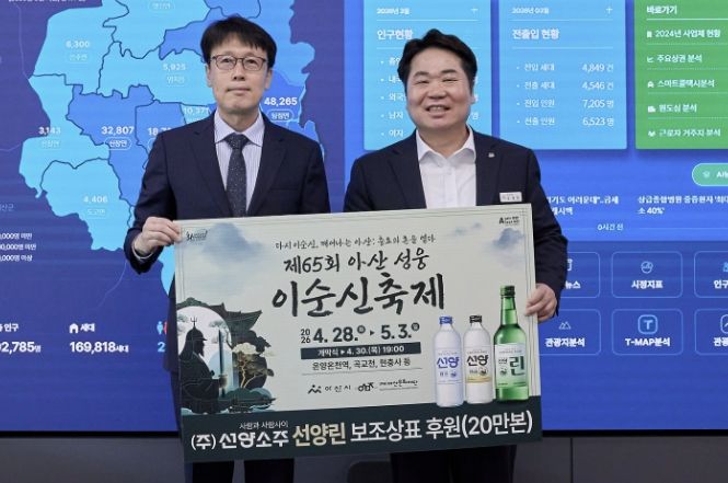 인사이드피플 노재현 기자 | 아산시가 충청권 대표 주류 기업인 ㈜선양소주와 함께 ‘제65회 아산 성웅 이순신축제’의 성공적인 개최를 위해 다시 한번 협력에 나선다.