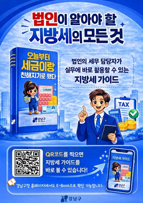 인사이드피플 노재현 기자 | 꿈이 모이는 도시, 미래를 그리는 강남구가 법인의 세무·회계 담당자가 지방세 업무를 한눈에 이해할 수 있도록 실무형 안내서 '오늘부터 세금이랑 친해지기로 했다'를 전자책으로 제작해 구 홈페이지에 게시했다.