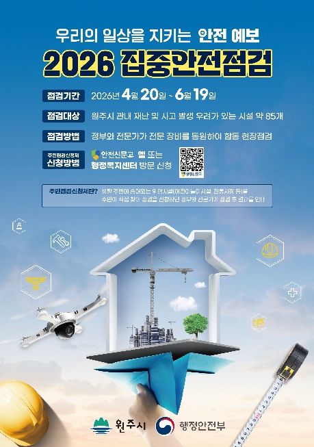 인사이드피플 노재현 기자 | 원주시는 4월 20일부터 6월 19일까지 61일간 ‘2026년 집중안전점검’을 추진한다.