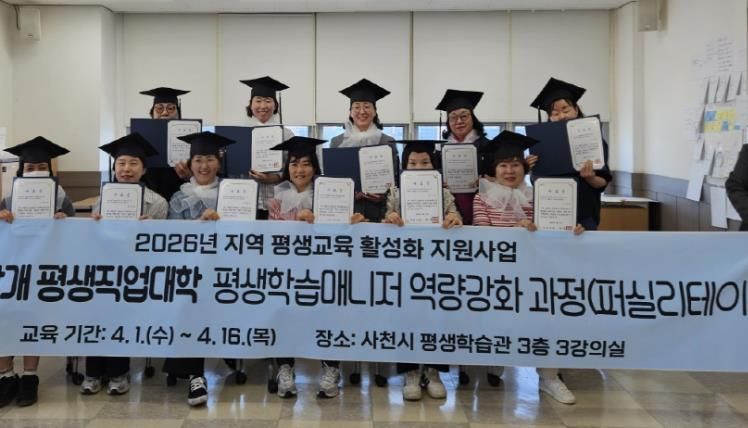 인사이드피플 노재현 기자 | 사천시 평생학습관은 지역 평생교육 현장에서 활동할 전문 인력을 양성하기 위해 운영한 '평생학습매니저 역량강화 과정'을 성공적으로 마무리했다고 17일 밝혔다.