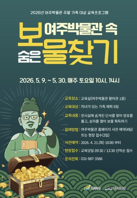 인사이드피플 노재현 기자 | 여주시 여주박물관은 가정의 달 5월을 맞아 가족이 함께 지역 문화유산의 가치를 즐겁게 배우고 체험할 수 있는 ‘여주박물관 속 숨은 보물찾기’를 운영한다.