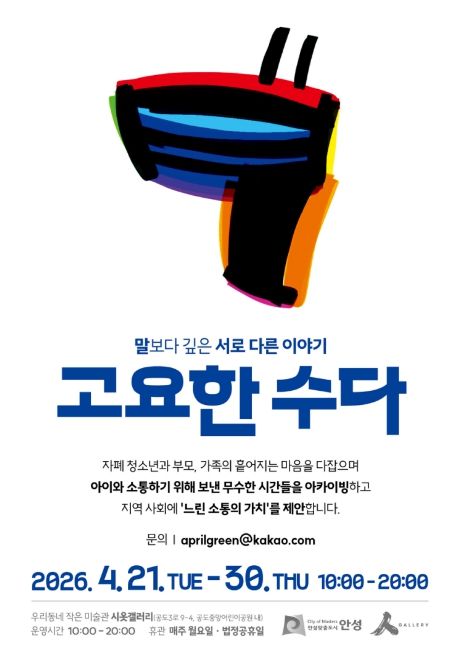 인사이드피플 강애자 기자 | 안성시 시옷갤러리는 오는 4월 21일부터 4월 30일까지 자폐 청소년과 그 가족이 함께 참여하는 전시 《고요한 수다》를 개최한다고 밝혔다.