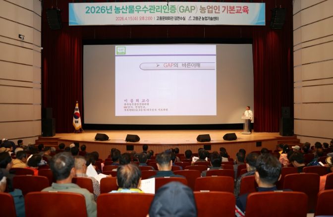 인사이드피플 심정보 기자 | 고흥군은 지난 15일 고흥문화회관 김연수실에서 지역 농업인 344명이 참석한 가운데 2026년 농산물우수관리(GAP) 인증 농업인 기본교육을 실시했다고 밝혔다.