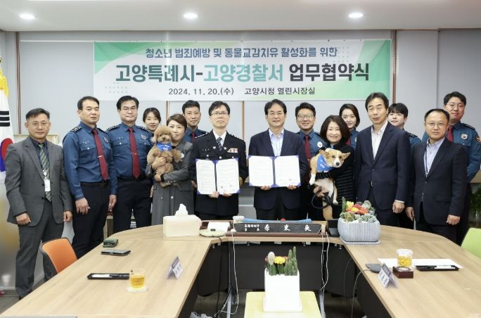 시는 2024년 고양경찰서와 협약을 맺고 전국 최초로 청소년 선도 프로그램에 동물교감치유를 도입했다. ‘마음 뿜뿜 펫 캠프’는 매주 수요일 동물교감치유센터에서 운영되며, 지난해 30명 이상의 청소년이 참여해 정서 안정과 범죄 예방 효과를 동시에 거두고 있다.