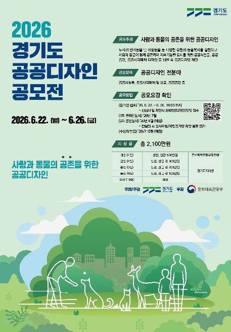 인사이드피플 노재현 기자 | 경기도가 ‘사람과 동물의 공존을 위한 공공디자인’이란 주제로 제20회 ‘2026년 경기도 공공디자인 공모전’을 6월 22일부터 26일까지 개최한다.