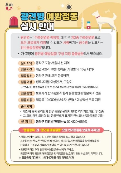인사이드피플 노재현 기자 | 동작구가 반려동물과 주민의 안전을 위해 봄철 광견병 예방접종을 실시한다고 밝혔다.