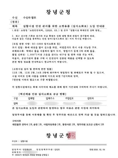 인사이드피플 노재현 기자 | 창녕군은 공무원을 사칭해 관내 장례식장에 소방용품(질식소화포) 구매를 요구하는 보이스피싱 사례가 발생했다고 밝혔다.