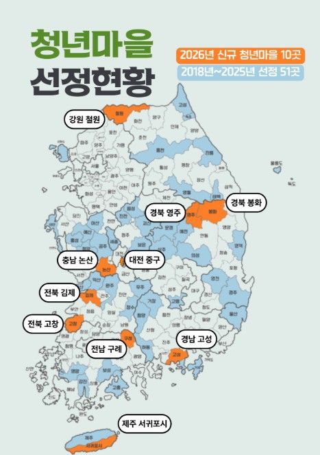 행정안전부는 전국 141개 팀이 치열한 경합을 벌여, 지역의 특색을 살려 청년 자립을 이끌 ‘2026년 청년마을’ 10곳을 최종 선정했다고 밝혔다.