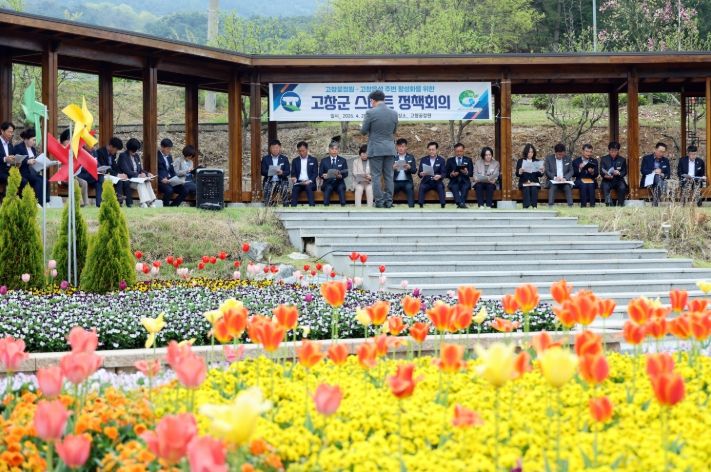 인사이드피플 노재현 기자 | 전북 고창군이 20일 봄꽃이 만개한 꽃정원에서 스마트정책회의(간부회의)를 열고 “꽃정원을 주민여가 공간과 체류형 관광의 핵심으로 만들겠다”고 강조했다.