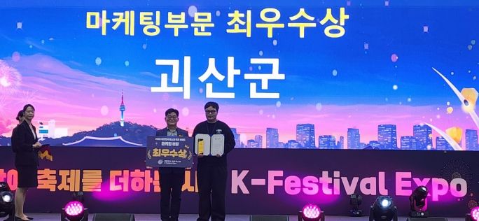 인사이드피플 노재현 기자 | 충북 괴산군은 지난 17일부터 사흘간 수원컨벤션센터에서 열린 ‘제6회 대한민국 대표 축제 박람회’에서 마케팅 부문 최우수상을 받았다고 20일 밝혔다.