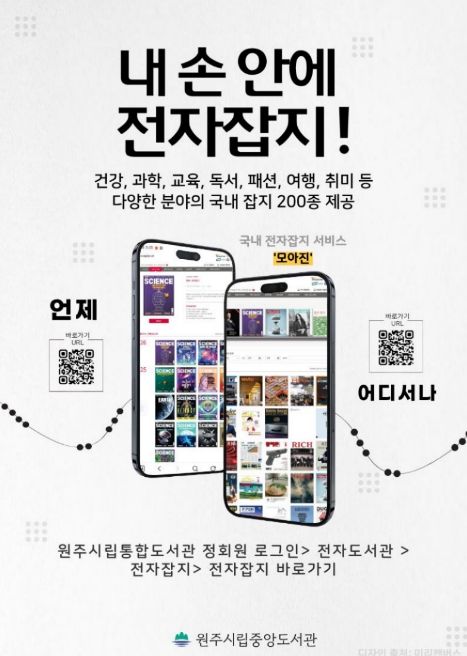 인사이드피플 노재현 기자 | 원주시립중앙도서관은 디지털 시대에 발맞춰 국내 전자잡지 구독 서비스 ‘모아진’을 운영하고 있다.