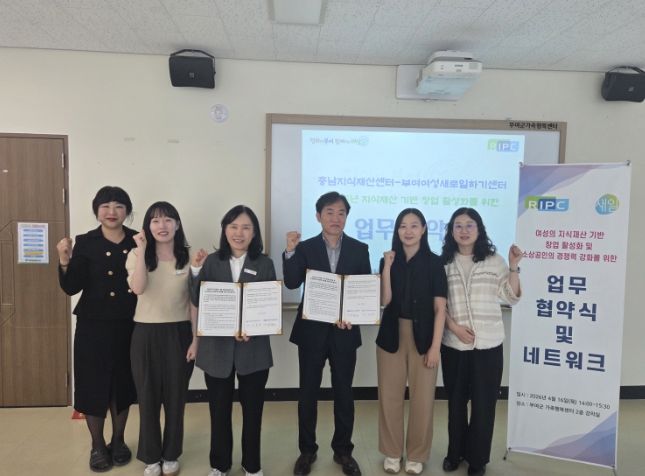 인사이드피플 심정보 기자 | 부여여성새로일하기센터는 지역 내 여성의 지식재산 기반 창업 활성화를 위해 충남지식재산센터와 업무협약을 체결했다고 21일 밝혔다.