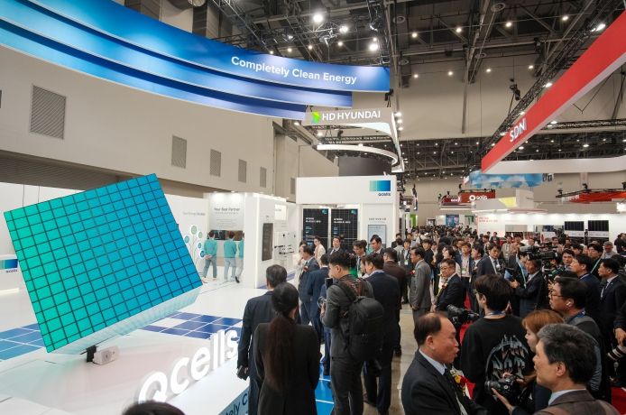 태양광 셀·모듈 분야에서는 생산량 기준 세계 10대 기업 중 한화솔루션(한화큐셀), 제이에이솔라(JA Solar), 캐나디안솔라(Canadian Solar), 아이코(Aiko), 티더블유솔라(TW Solar), 징코솔라(Jinko Solar) 등 6개사가 참가해 차세대 고효율 셀·모듈 기술을 소개한다.