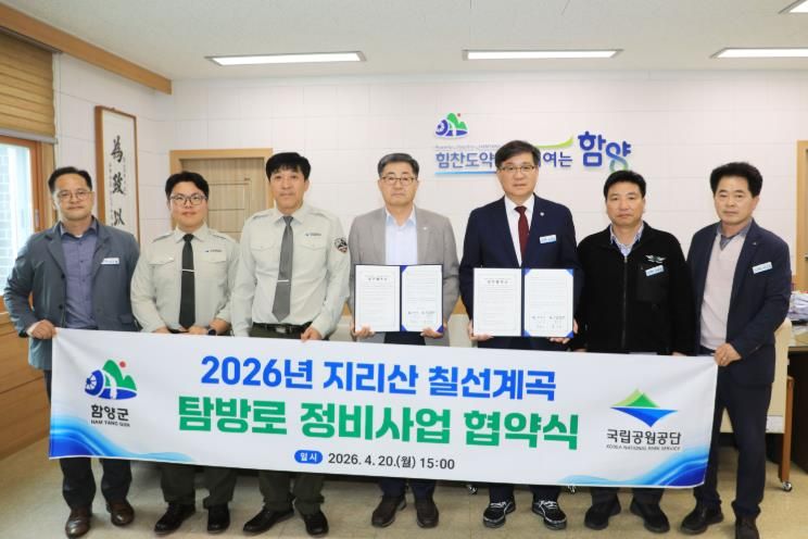함양군 허인호 산림녹지과장은 “이번 협약을 통해 칠선계곡 탐방로를 더 안전하고 쾌적한 탐방환경으로 정비할 계획”이라며 “앞으로도 관계기관과 긴밀히 협력해 지리산을 찾는 탐방객들의 만족도를 높이고 지역 관광 활성화에도 이바지하겠다”라고 전했다.