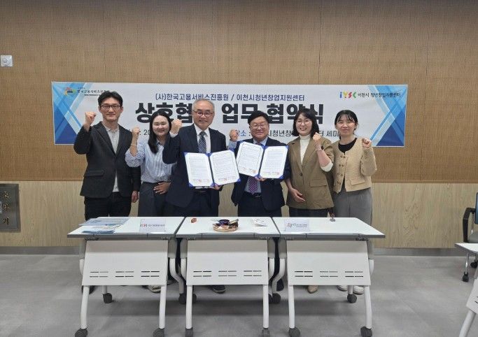 인사이드피플 이현진 기자 | 이천시는 청년 취업 및 창업 지원 강화를 위해 사단법인 한국고용서비스진흥원과 이천시 청년창업지원센터가 지난 4월 15일 센터 세미나실에서 업무협약(MOU)을 체결했다고 밝혔다.