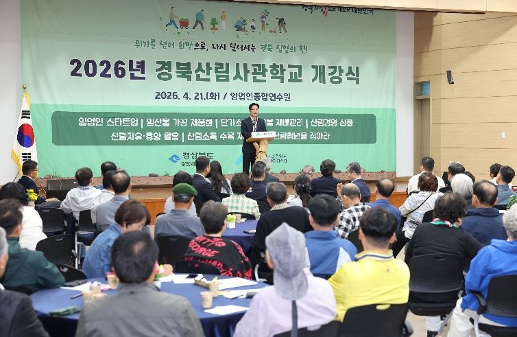 인사이드피플 노재현 기자 | 경상북도는 4월 21일, 산림조합중앙회 임업인종합연수원에서 교육생 등 160명이 참석한 가운데 ‘2026년 경북산림사관학교 개강식’을 개최했다.