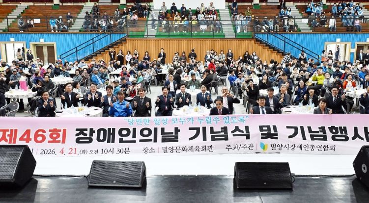 인사이드피플 노재현 기자 | 경남 밀양시는 21일 밀양문화체육회관에서 밀양시장애인총연합회(회장 김수현) 주관으로 ‘제46회 장애인의 날’ 기념행사를 개최했다.