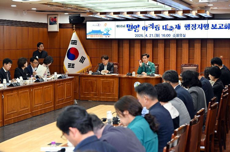인사이드피플 노재현 기자 | 경남 밀양시는 21일 시청 소회의실에서 오는 5월 7일부터 10일까지 나흘간 열리는 제68회 밀양아리랑대축제의 성공적인 개최를 위한 행정지원 보고회를 가졌다.