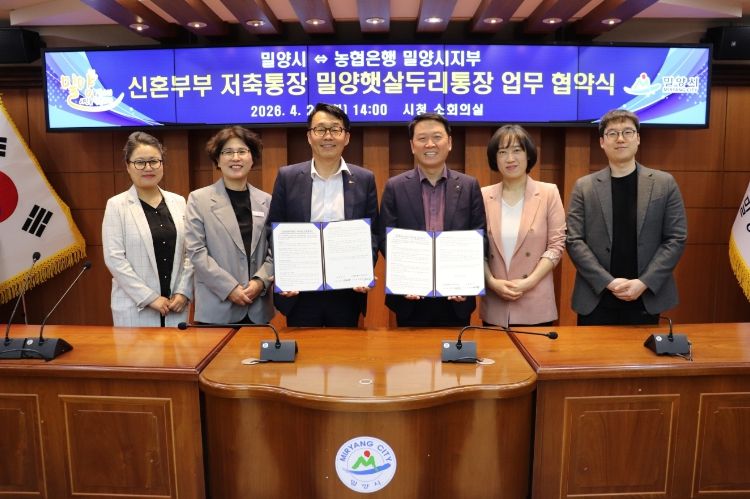 인사이드피플 노재현 기자 | 경남 밀양시는 21일 시청 소회의실에서 농협은행 밀양시지부와 ‘밀양햇살두리통장 지원사업’의 원활한 추진을 위한 업무협약을 체결했다.