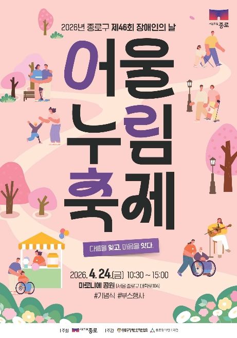 종로구는 제46회 장애인의 날을 맞아 4월 24일 10시 30분부터 15시까지 마로니에 공원에서 '2026년 종로구 어울누림 축제'를 개최한다.