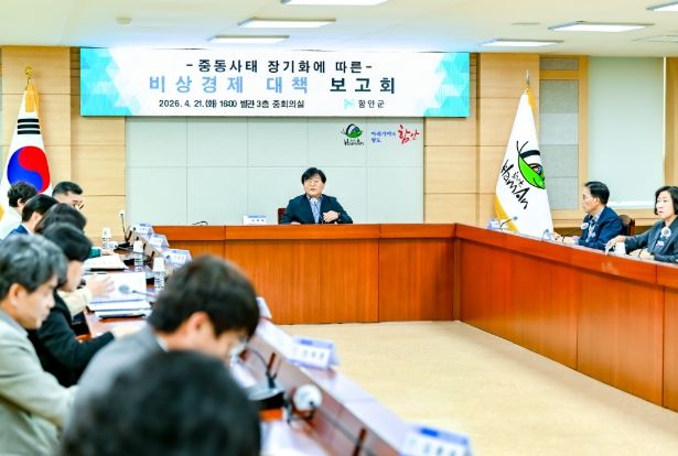 인사이드피플 노재현 기자 | 함안군은 중동전쟁 장기화에 따른 고유가와 원자재 수급 불안에 대응하기 위해 지난 21일 군청 중회의실에서 ‘비상경제 대책 보고회’를 개최하고 전방위 비상경제 대응체계를 가동했다고 밝혔다.