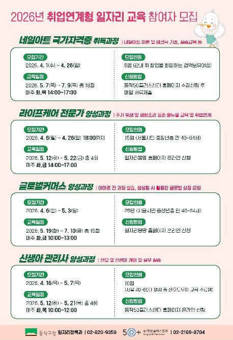 박일하 동작구청장은 “구민들이 교육을 넘어 실제 취업으로 이어지는 성과를 체감할 수 있도록 취업 연계 중심의 일자리사업을 확대했다”며, “앞으로도 구민의 든든한 일자리 파트너로서 직무 교육부터 취업 연계, 사후 관리까지 체계적으로 지원하겠다”고 말했다.
