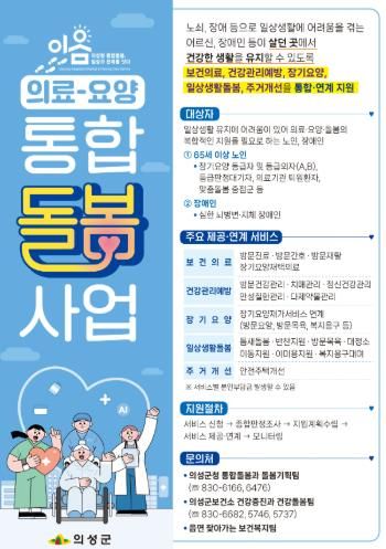 인사이드피플 장은미 기자 | 의성군은 지역 어르신들이 시설이 아닌 익숙한 삶의 터전에서 필요한 돌봄을 받을 수 있도록 ‘의성군 의료·요양 통합돌봄'이음'' 서비스 체계를 2026년 본사업 시행에 맞춰 전면 개편·강화하고 있다고 밝혔다.