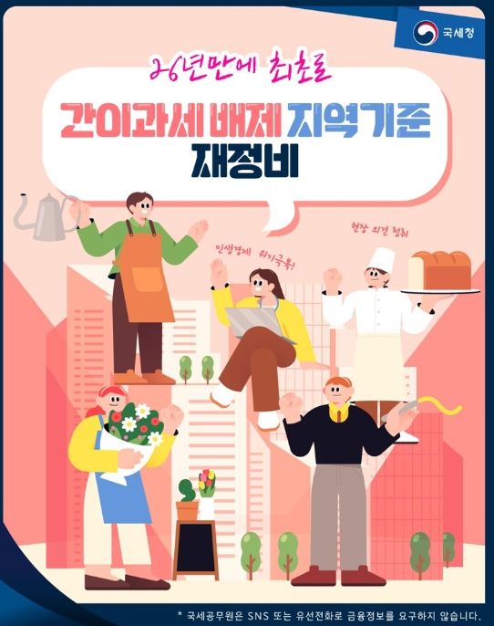 *자세한 사항은 국세청 홈페이지 → 알림·소식 → 보도자료 → 간이과세 적용 합리화로 544개 지역 영세사업자 4만 명 세부담 완화 게시글 참조