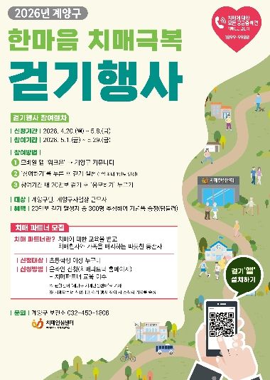 인사이드피플 장은미 기자 | 인천광역시 계양구는 구민의 치매 예방과 인식 개선을 위해 5월 1일부터 29일까지 4주간 ‘2026년 계양구 한마음 치매극복 걷기행사’를 개최한다.
