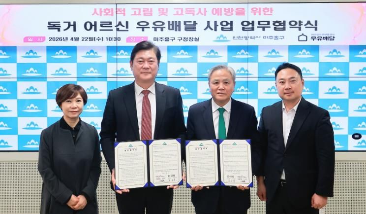 인사이드피플 노재현 기자 | 인천 미추홀구는 22일 (사)어르신의 안부를 묻는 우유배달과 독거 어르신의 건강한 생활 지원 및 고독사 예방을 위한 ‘어르신의 안부를 묻는 우유배달 사업’ 업무협약을 체결했다.