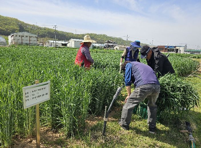 이번 시험은 조사료용 트리티케일 품종인 ‘한영’과 ‘조성’을 중심으로, 이탈리안라이그라스(IRG)와 호맥을 대조구로 설정해 파종 시기를 달리하며 추진됐다. 이를 통해 가을철 파종 시기별 생육 특성과 조사료 생산성을 비교 분석하고, 마늘·양파 후작 작부체계에 적합한 품종과 파종 시기를 도출하는 데 목적을 두고 있다.