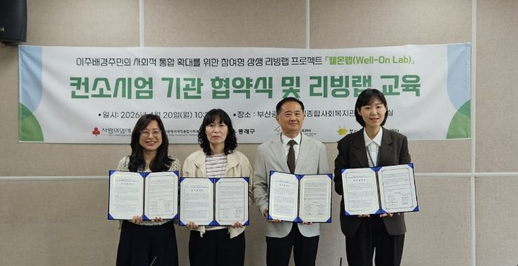 부산사회복지공동모금회 기획 사업으로 선정된 ‘웰온랩’은 사직종합사회복지관이 주도하는 3년간의 혁신 프로젝트다. 기존의 일방적인 수혜 중심 서비스에서 벗어나, 이주배경주민이 지역사회의 문제를 직접 발굴하고 해결책을 설계하는 ‘주체’로 참여하는 소셜리빙랩(Social Living Lab) 방식을 도입했다.