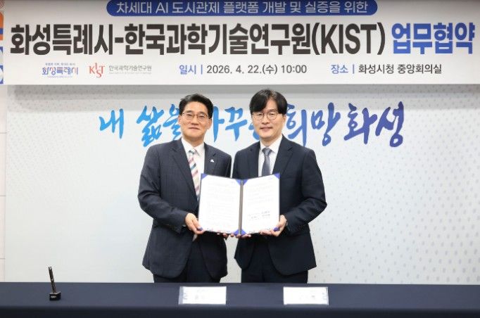 인사이드피플 노재현 기자 | 화성특례시는 도시상태정의 기반의 AI 도시관제 체계로의 전환에 본격 착수했다. 시는 22일 한국과학기술연구원(KIST)과 ‘차세대 AI 도시관제 플랫폼 개발 및 실증’을 위한 업무협약(MOU)을 체결했다.
