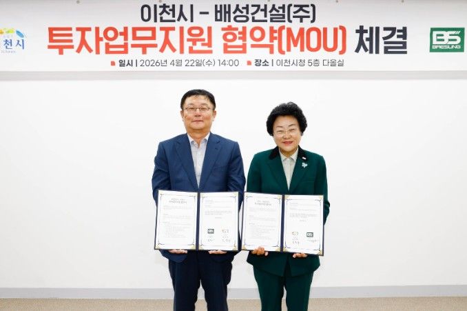 인사이드피플 이현진 기자 | 이천시가 22일 배성건설㈜와 203억 원 규모의 투자업무지원협약을 체결하고, 기업의 신규 공장 신설을 본격 지원한다.