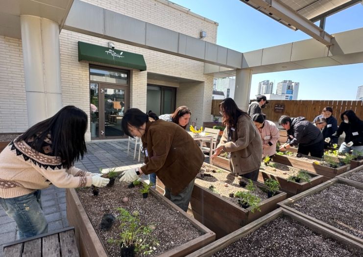 '인생의 초록 틈새 만들기'를 주제로 한 옥상텃밭 가꾸기는 지난 4월 7일 첫 회기를 시작했다. 총 10회기로 운영되며, 연간 240명이 참여할 예정이다. 참여자들은 채소를 직접 심고 가꾸는 체험을 통해 자연과 교감하고, 소모임 활동으로 이웃과 교류하는 시간을 갖는다.