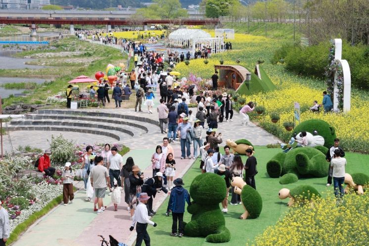 올해 꽃강길은 전년보다 공간 연출을 한층 확장해 전 구간을 하나의 테마형 정원으로 구성했다. 주요 구간은 ▲웰컴가든 ▲플로라가든 ▲어린이정원 ▲봄꽃정원 ▲생태정원 등 5개 구역으로 나뉘어 다양한 볼거리와 체험 요소를 제공하고 있다.