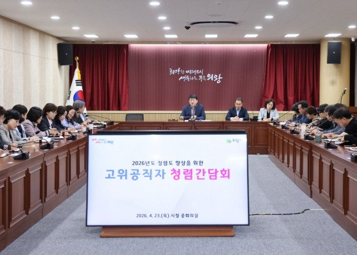 인사이드피플 노재현 기자 | 의왕시가 4월 23일 시청 중회의실에서 고위공직자를 대상으로 청렴간담회를 개최하고, 청렴도 향상을 위한 정책 추진 기반 마련에 나섰다.