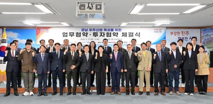 두 번째로, 경남 우주산업 육성을 위한 업무협약이 경상남도·진주시·경상국립대학교·KTL과 ㈜일켐, ㈜제노코, 지티엘, 한컴인스페이스 등 4개 우주기업 간 체결됐다.