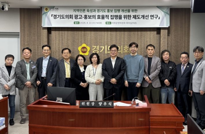 인사이드피플 김재윤 기자 | 경기도의회 의회운영연구회(위원장 양우식)는 지난 22일 의회운영위원회 회의실에서 '경기도의회 광고·홍보의 효율적 집행을 위한 제도개선 연구' 용역 중간보고회를 개최했다.
